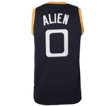 The Monstars jersey is from the movie Space Jam 1. The front is the logo of monstars and the back is #0. The logo and numbers are all stitched.