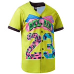 90s Bel Air 23 Printed Baseball Jersey - Light Yellow is inspired by the 90s TV series The Fresh Prince of Bel-Air. Unisex design graphic. Sublimation printed lettering. Great idea for the 90s theme parties, Hip-Hop dance uniform.