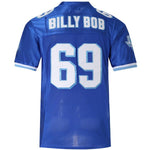 The Billy Bob jersey is from the movie "Varsity Blues." It is the uniform of the West Canaan Coyotes football team in the film. Billy Bob was the star player on this team. The jersey features the number 69, with the name and numbers stitched.