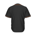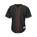 The blank black and orange baseball jersey is made of solid color fabric. And stripes are sewn on the chest and sleeves. Please leave a message in order notes if you would like to remove the lines on the chest or sleeves.