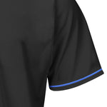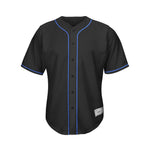 Shop blank black and blue baseball jerseys for men & youth. Our jerseys are made from durable and breathable solid-color polyester fabric, ensuring comfort during any activity. The chest and sleeve stripes are carefully sewn on, adding a classic touch to the design. These versatile jerseys are perfect for DIY customization or outfitting your baseball team. Ideal for both daily wear and practice, these athletic jerseys offer style and performance in one package.