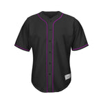 The Blank Black and Purple Baseball Jersey for Men & Youth is made of solid color fabric. And stripes are sewn on the chest and sleeves. Please leave a message in order notes if you would like to remove the lines on the chest or sleeves.