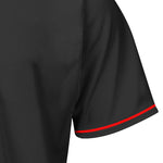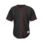 Shop blank black and red baseball jerseys for men & youth. Our jerseys are made from durable and breathable solid-color polyester fabric, ensuring comfort during any activity. The chest and sleeve stripes are carefully sewn on, adding a classic touch to the design. These versatile jerseys are perfect for DIY customization or outfitting your baseball team. Ideal for both daily wear and practice, these athletic jerseys offer style and performance in one package.