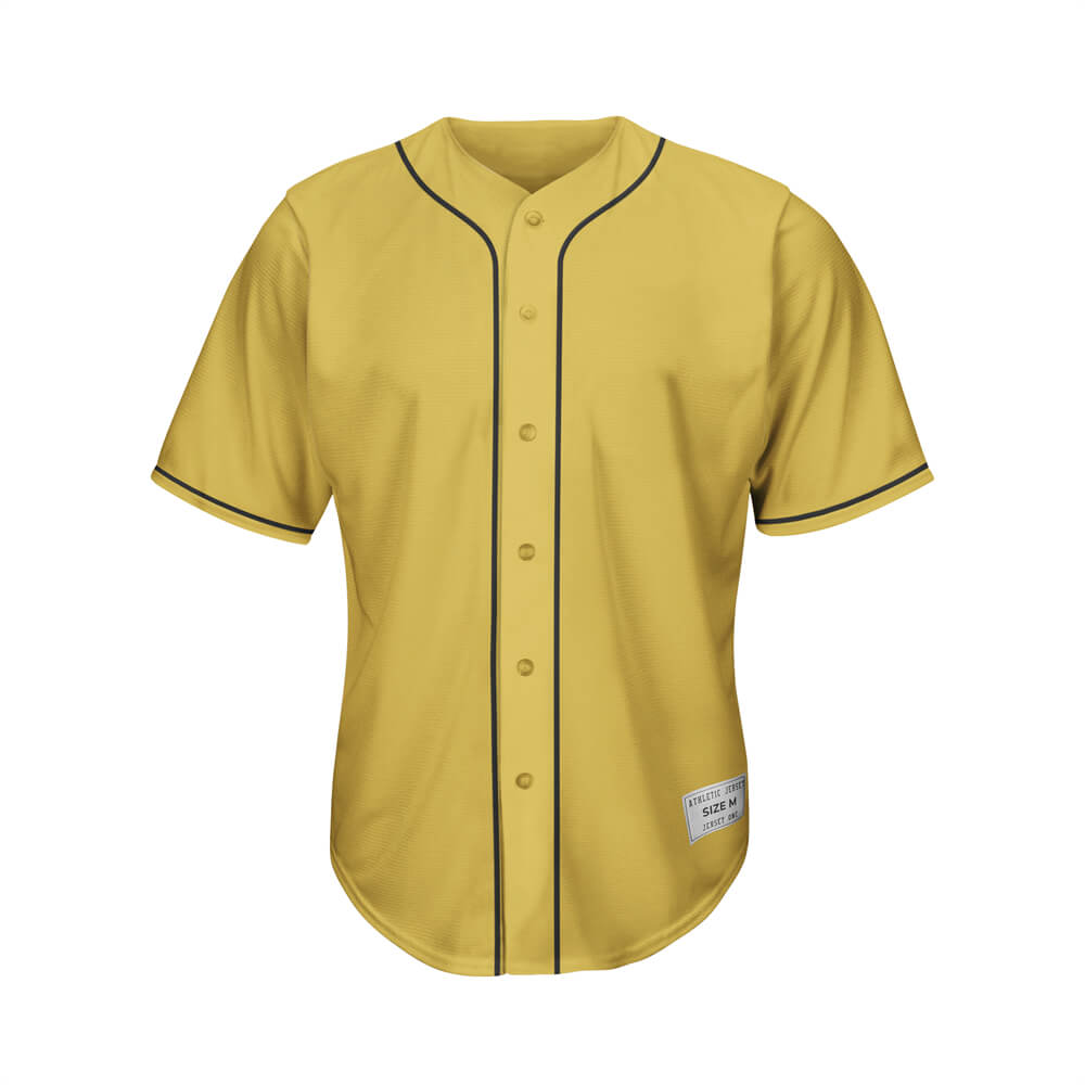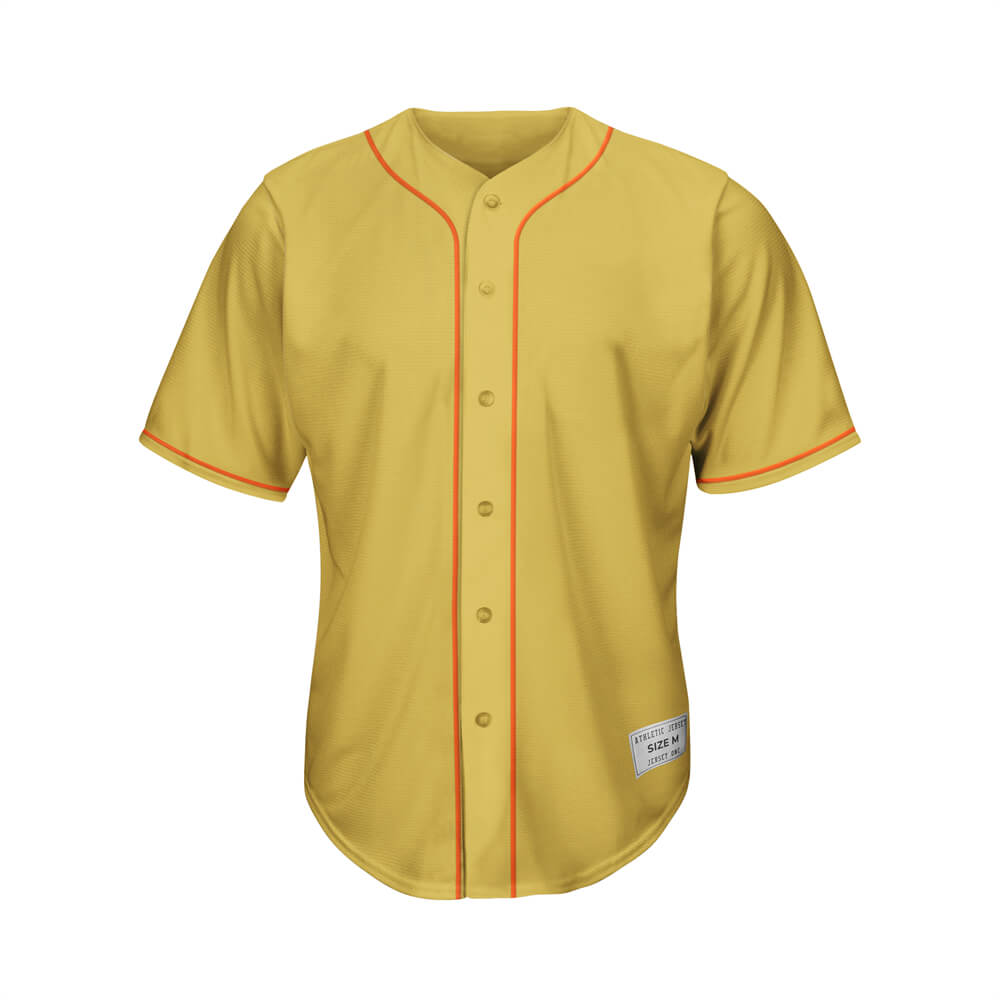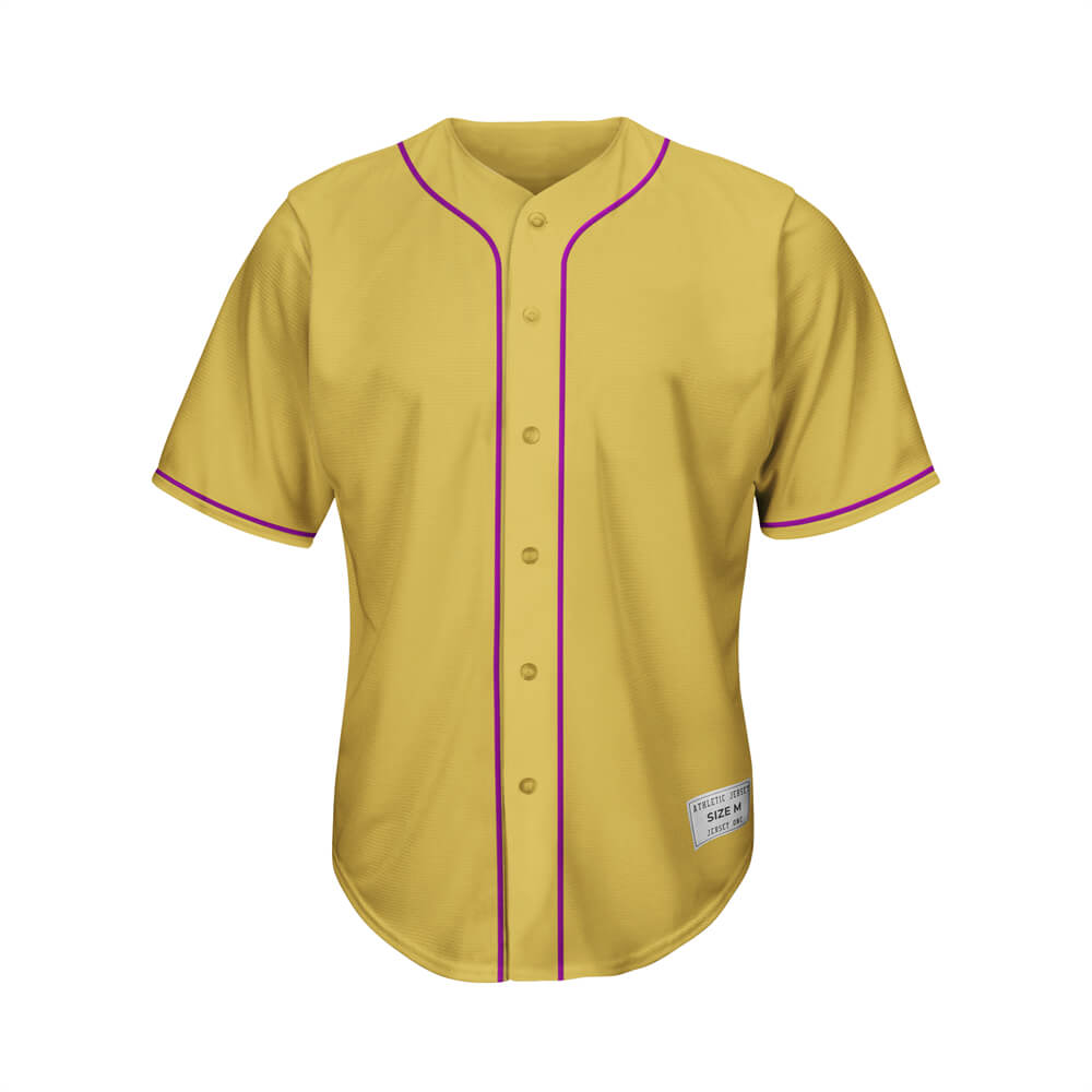 The Blank Gold Baseball Jersey is made of solid color fabric. And stripes are sewn on the chest and sleeves. Please leave a message in order notes if you would like to remove the stripes on the chest or sleeves.