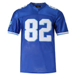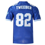 Charlie Tweeder Varsity Blues Jersey is from the sports movie Varsity Blues. The football team's name is West Canaan Coyotes. The Charlie Tweeder jersey features 82 on the front of the jersey, the name Tweeder and number 82 on the back, and the Coyotes logo on the sleeve.