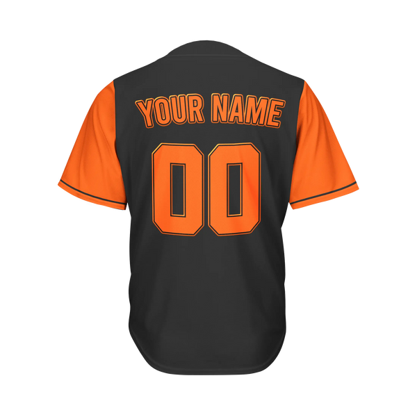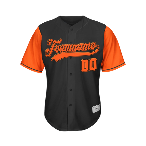 Shop black and orange sleeves baseball jersey for men, youth, and toddlers. The baseball jersey features quick-dry fabric. Sublimation and stitched craft available