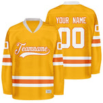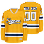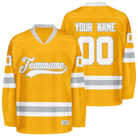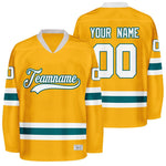 We have 2 kinds of Custom Gold Hockey Jersey, Tackle Twill and Sublimation.