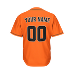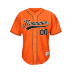 Shop custom orange black and white baseball jersey for men, youth, and toddlers. The baseball jersey features quick-dry fabric. Sublimation and stitched craft available
