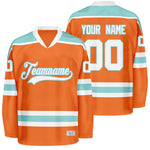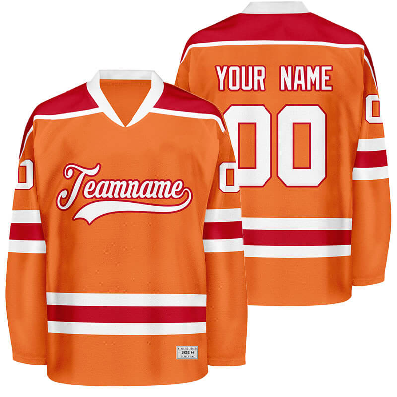 We have 2 kinds of Custom Orange Hockey Jersey, Tackle Twill and Sublimation.