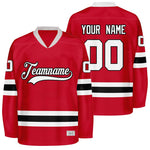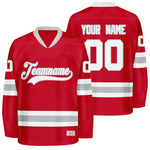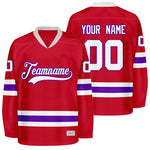 We have 2 kinds of Custom Red Hockey Jersey, Tackle Twill and Sublimation.