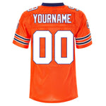 Custom The Waterboy Football Jersey is from the movie The Waterboy. The football team's name is Mud Dogs. The primary color of the jersey is orange. And the jersey is with stitched logo, name, and numbers. The Bourbon Bowl logo is on the corner of the chest.