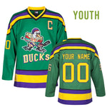 Youth Custom Mighty Ducks Jersey is from the movie The Mighty Ducks D1. We provide options to customize your name and number. The kid hockey jersey features stitched logo, name and numbers. It will take 10-20 business days to ship out