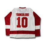 The Dean Youngblood jersey is from the classic movie Youngblood. Rob Lowe played the role of Dean Youngblood, a hockey player for the Hamilton Mustangs. If you're a fan of Rob Lowe, this jersey is a must-have.