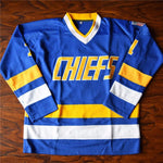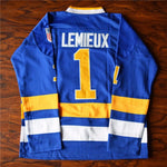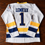 Denis Lemieux jersey is from the classic ice hockey movie Slapshot. Denis Lemieux is the player of Charlestown Chiefs. His jersey number is 1. The name and number are all stitched.