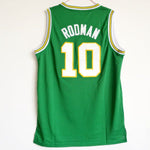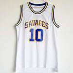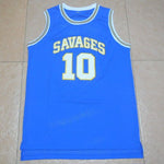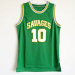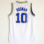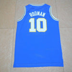 Dennis Rodman college jersey is from the Southeastern Oklahoma State University basketball team, the Savages. The jersey number is 10, and it is available in three colors: white, green, and blue. Authentic jersey with a throwback design. The name and numbers are all stitched.