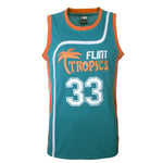 The Jackie Moon Jersey is from the movie Semi-Pro. Will Ferrell acted as Jackie Moon. Jackie Moon is the owner and basketball player of Flint Michigan Tropics. 5 colors available, home white, away green, blue, purple, and black.