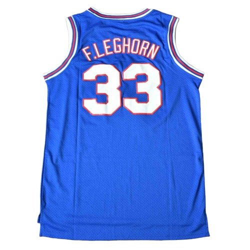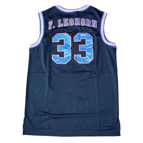 Foghorn Leghorn Space Jam Jersey is from the movie Space Jam (1996). The front of the jersey is the logo of Tune Squad. The back of the jersey is #33 and L.LEGHORN. The name and numbers are stitched.