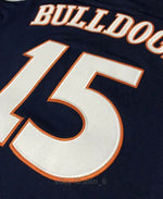 The J Cole High School Jersey features stitched lettering. The basketball jersey is from J Cole's High School Basketball Team, the Terry Sanford Bulldogs.