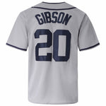 Josh Gibson Jersey features stitched logo, name and number. The jersey number is 20. The uniform is from the baseball team Homestead Grays.