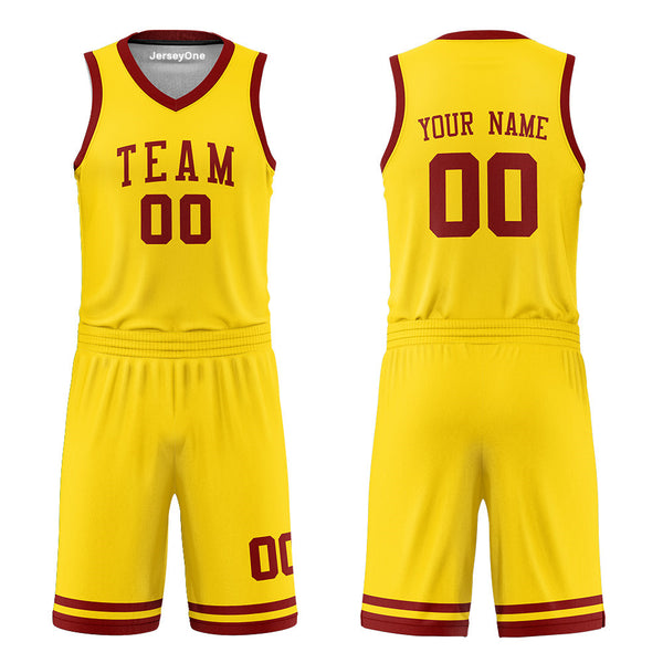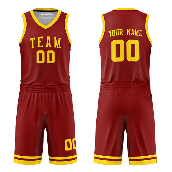 Elevate your game with JerseyOne's Maroon and Gold Reversible Basketball Jersey, designed for champions on and off the court. This versatile jersey features a bold maroon and gold color scheme with a fully reversible design, giving you two styles in one.