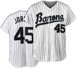 Michael Jordan Barons Jersey is from the team Birmingham Barons. The logo, name, and numbers of the jersey are all stitched. The number of the jersey is 45.
