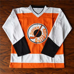 The Ogie Ogilthorpe Jersey #2 from the classic hockey movie Slapshot is a must-have for any fan. Representing the Syracuse Bulldogs, this jersey features a bold orange color with striking white and black accents. The V-neck, long-sleeve design is both stylish and practical, making it perfect for any occasion.