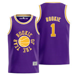 Purple Rookie of the Year Basketball Jersey - This jersey features stitched lettering and is custom-made. Please allow 2-4 weeks for shipping. If you need an urgent order, we can create a sublimation jersey, which takes around 2 weeks to ship. Leave a message in the 'other request' field, please.