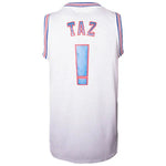 Taz Space Jam Jersey is from the movie Space Jam. The team is named Tune Squad. They need to beat the team Monstars to save the Looney Tunes. The front of Taz Space Jam Jersey features the logo of Tune Squad as long as the back is TAZ and number is !, so this jersey is tailored for the perfect game day fit. You can show your idol and get the perfect look to let everyone know who you cheer for. To be a fan of Taz via this white swingman jersey