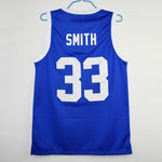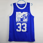 Will smith wore this jersey in MTV's Annual Rock N' Jock B-Ball Jam. The number is 33. Ant the name and numbers of the jersey are all stitched.