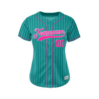 Women Custom Sublimation Teal Pinstripe Baseball Jersey