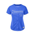 We have 2 kinds of Women's Custom Blue Baseball Jersey, Tackle Twill and Sublimation.
