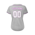 We have 2 kinds of Women's Custom Gray Baseball Jersey, Tackle Twill and Sublimation.