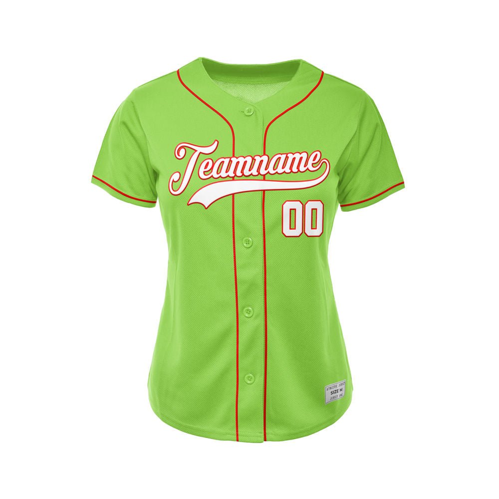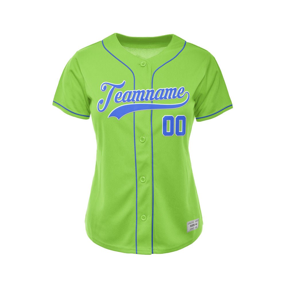 We have 2 kinds of Women's Custom Green Baseball Jersey, Tackle Twill and Sublimation.