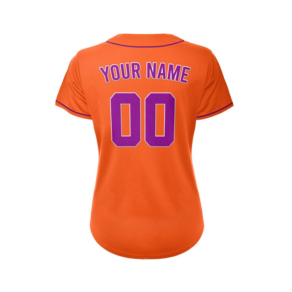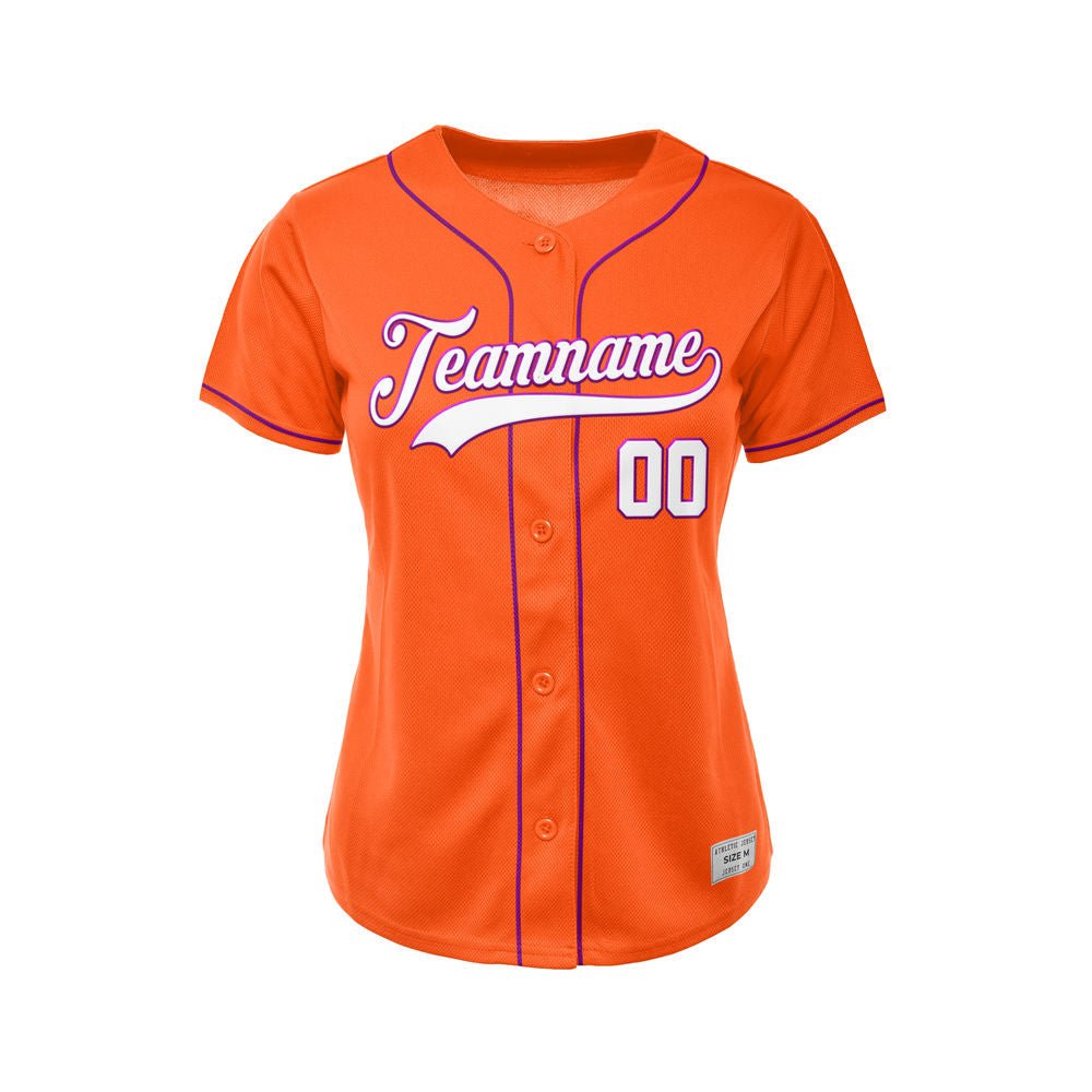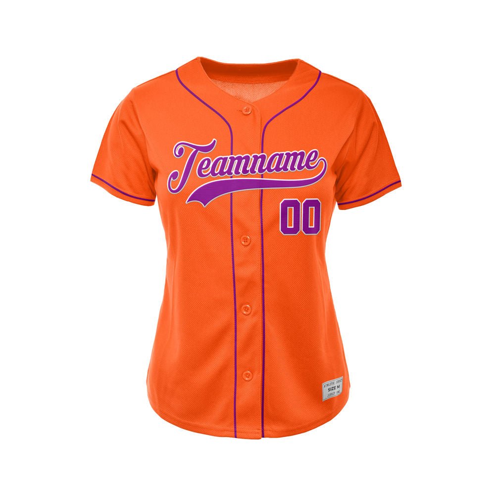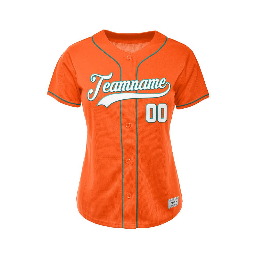 We have 2 kinds of Women's Custom Orange Baseball Jersey, Tackle Twill and Sublimation.
