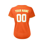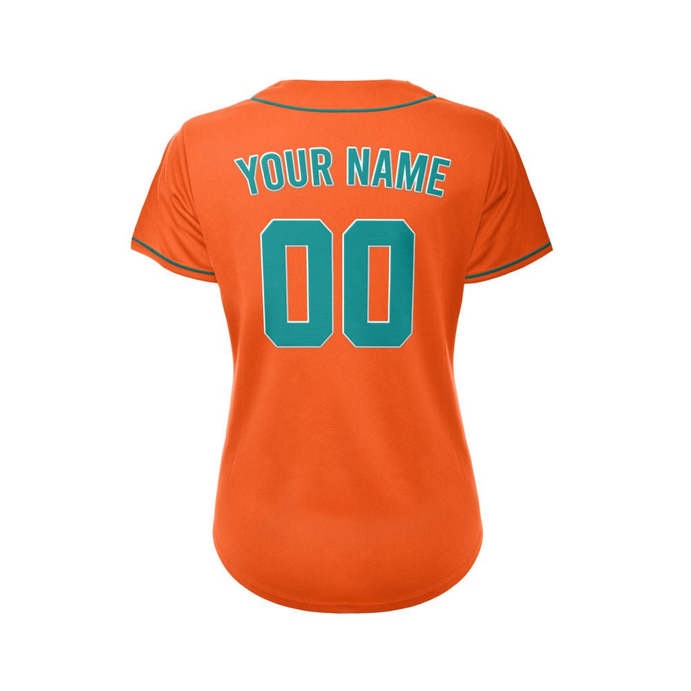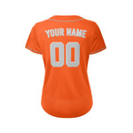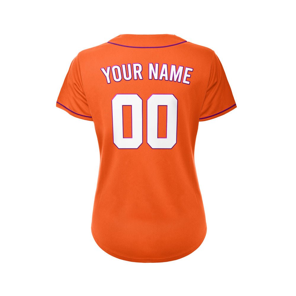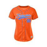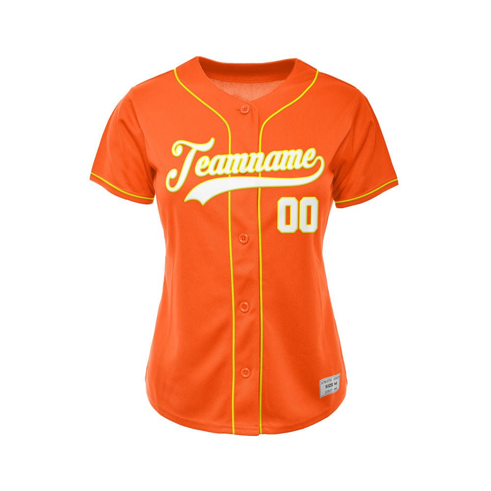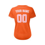 We have 2 kinds of Women's Custom Orange Baseball Jersey, Tackle Twill and Sublimation.