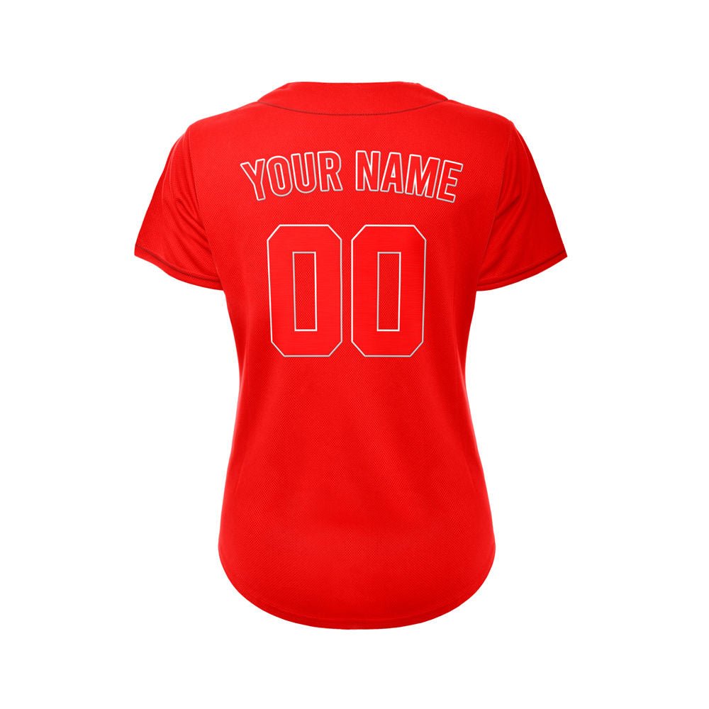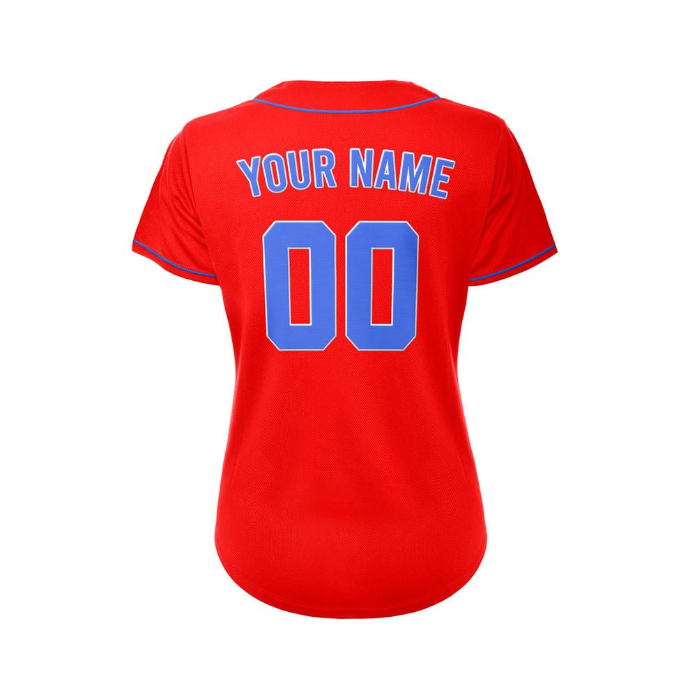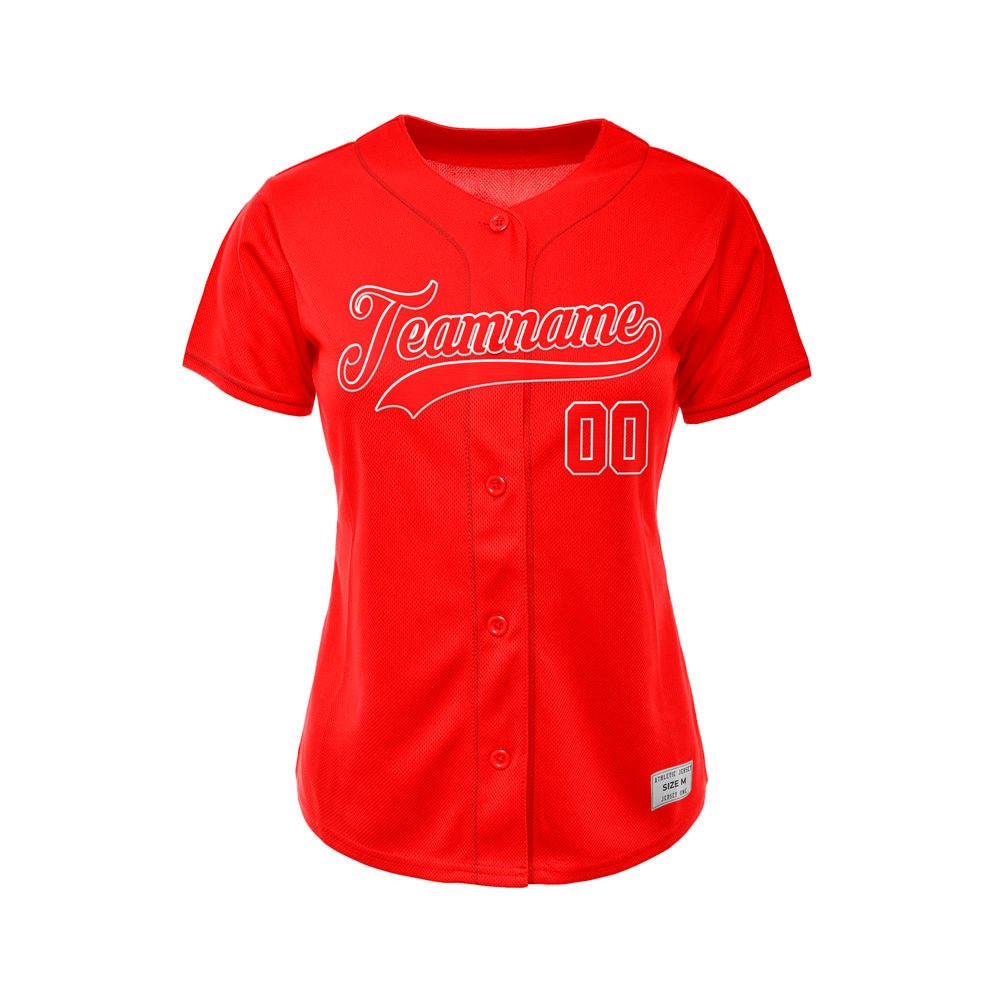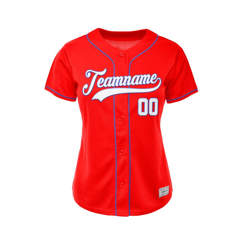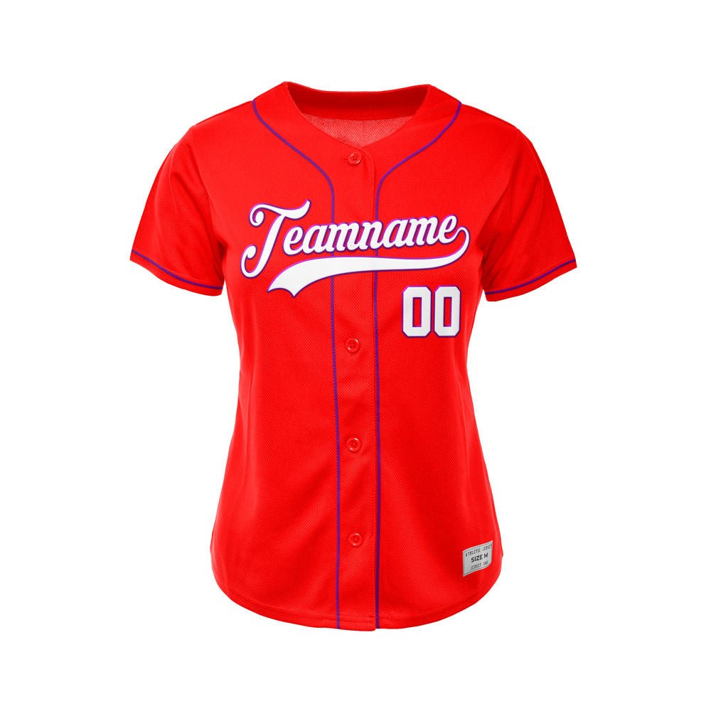 We have 2 kinds of Women's Custom Red Baseball Jersey, Tackle Twill and Sublimation.