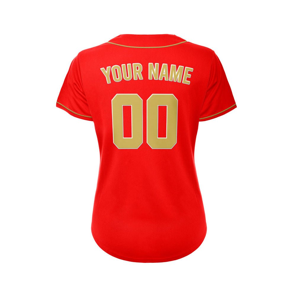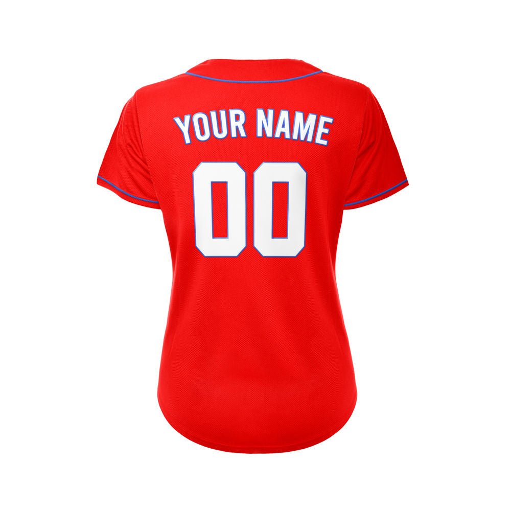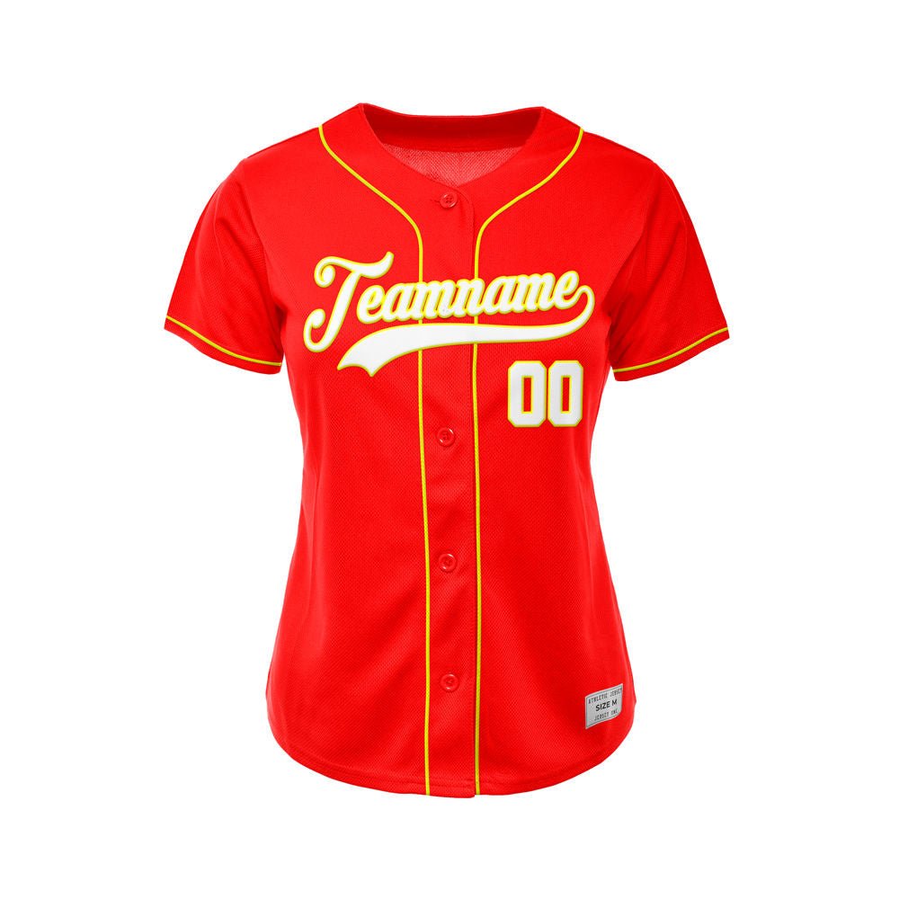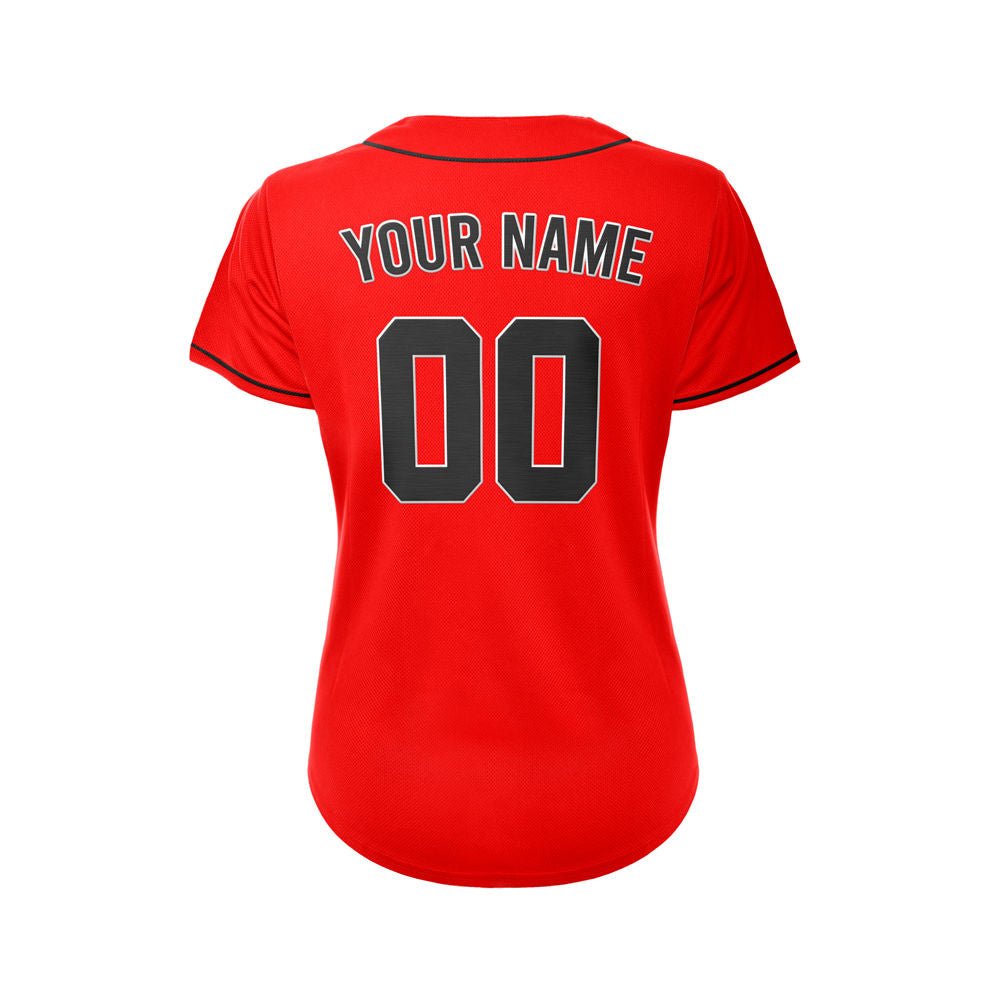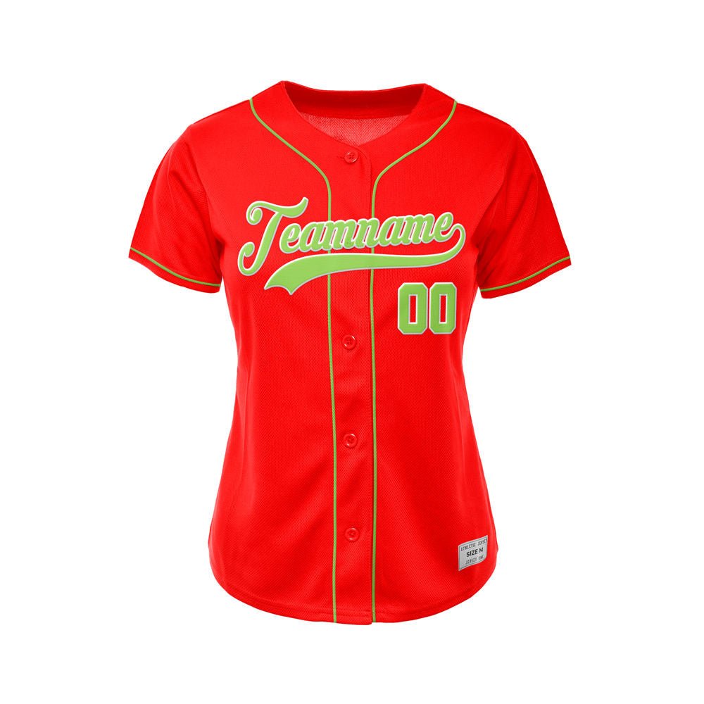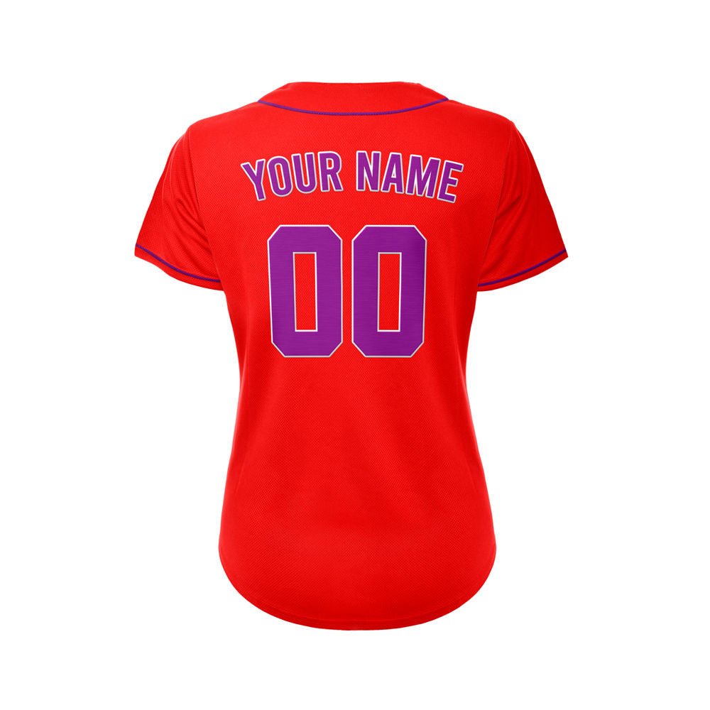 We have 2 kinds of Women's Custom Red Baseball Jersey, Tackle Twill and Sublimation.