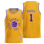 Yellow Rookie of the Year Basketball Jersey - This jersey features stitched lettering and is custom-made. Please allow 2-4 weeks for shipping. If you need an urgent order, we can create a sublimation jersey, which takes around 2 weeks to ship. Leave a message in the 'other request' field, please.