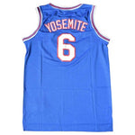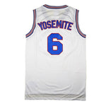 Yosemite Space Jam Jersey is from the movie Space Jam (1996). The front of the jersey is the logo of Tune Squad. The back of the jersey is #6 and YOSEMITE. The name and numbers are stitched.