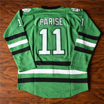 Zach Parise Sioux jersey is from North Dakota Sioux. Parise's jersey number is 11. The name and numbers are all stitched.